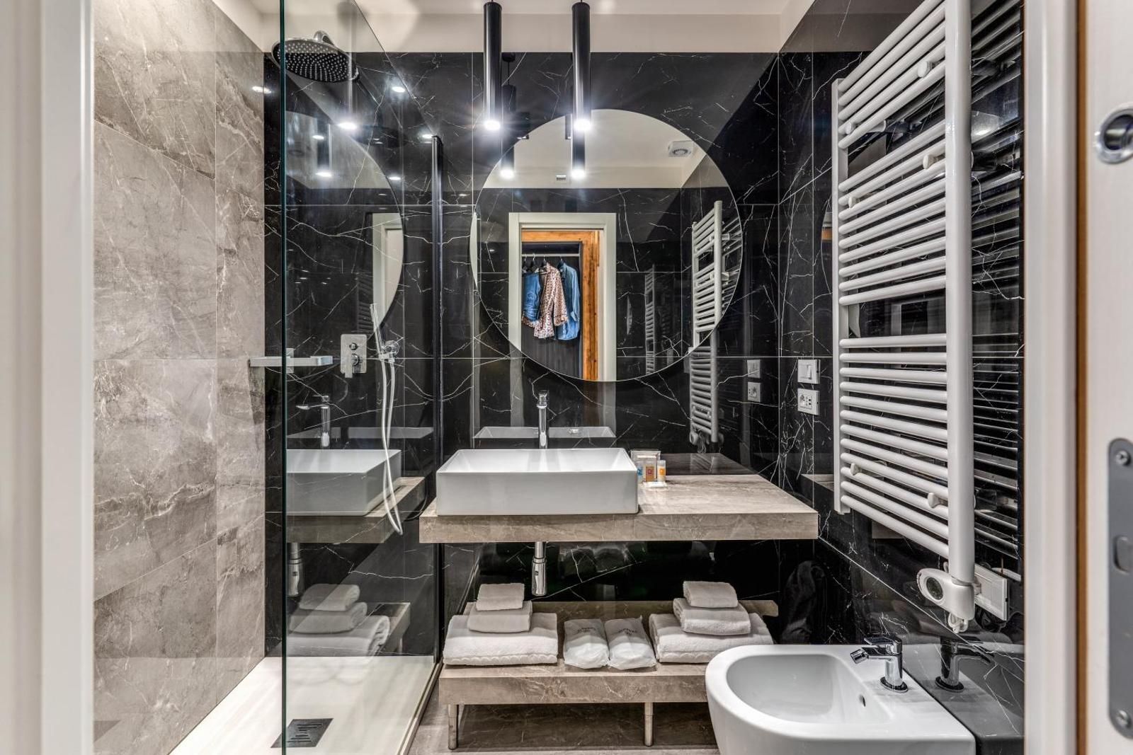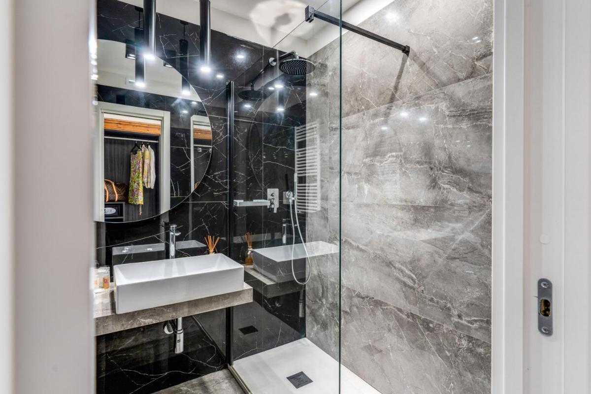 Photos showcase a blend of classical and contemporary. The palazzo’s entrance features tall doors and decorative details that set a refined tone. Inside, rooms are light-filled, with neutral décor and crisp bedding. Bathrooms are modern, with glass-enclosed showers and sleek fittings.